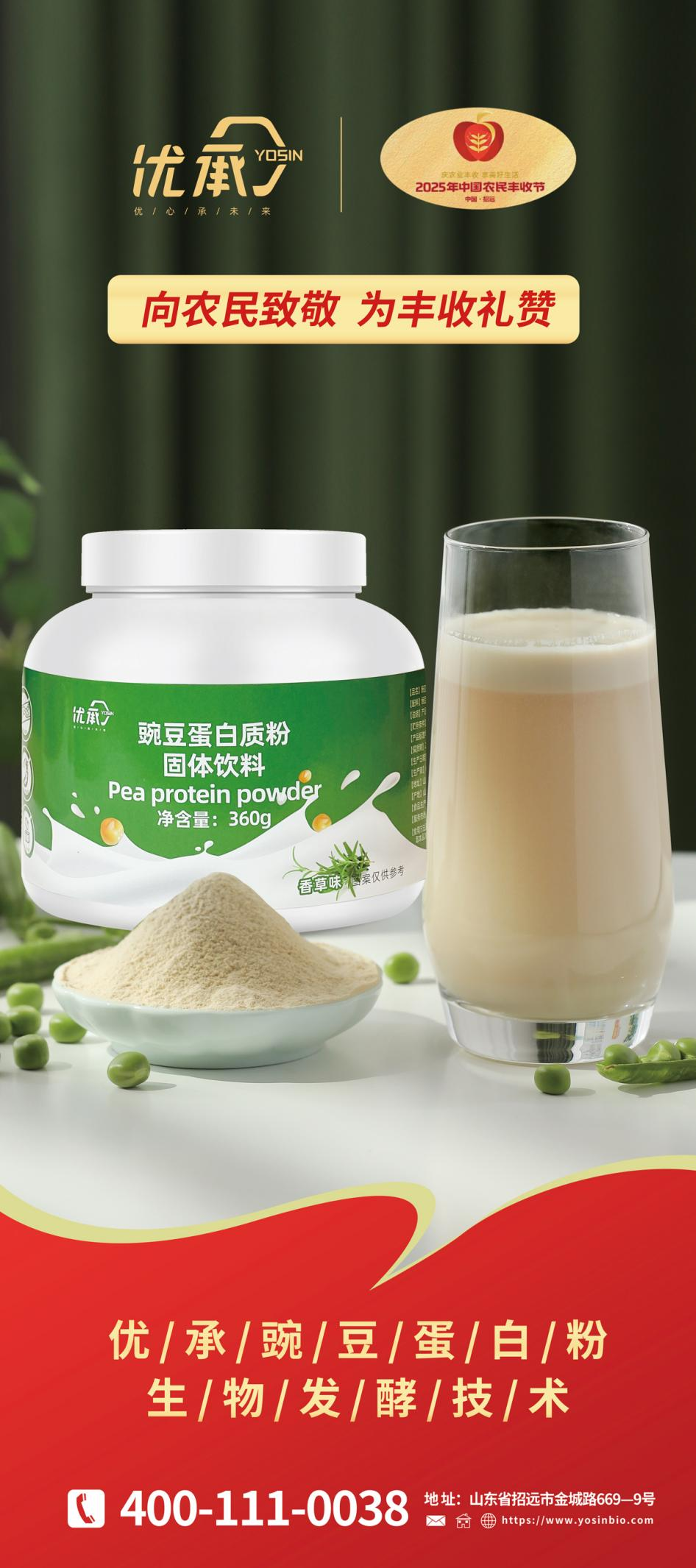优承生物携生物发酵豌豆蛋白粉亮相中国农民丰收节,不仅是一次产品的展示,更是一次健康理念的传递。在这个充满收获与希望的季节里,让我们携手优承生物,共同迈向更加健康、绿色的未来!
